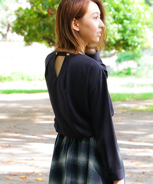 大人顔で着用できるドレープフォルムブラウス。透け感のない肉厚のジョーゼット素材を使用しました。すっきりした袖口でジャケットを羽織ってももたつかない仕上がりです。背面のカッティングがさりげないデザインポイントです。スカートからパンツまで着回しできる1枚です。大人顔なネイビー・人気のグリーン、ニュアンスグレーの3色展開です。