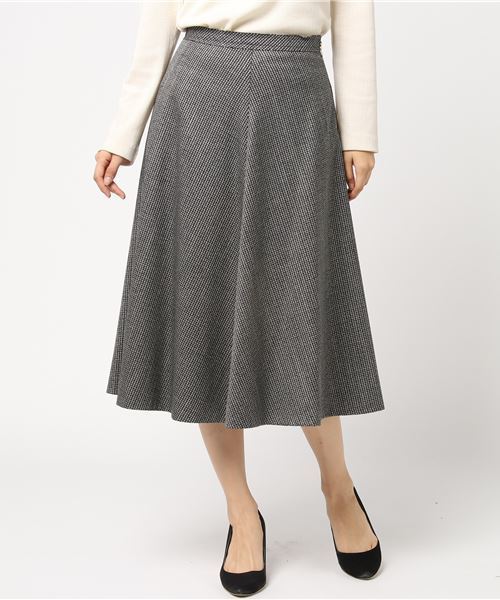今年らしいクラシカルな雰囲気のチェックフレアースカート。フロントでバイアスに切り替えているので、落ち感のきれいなシルエットです。脇ファスナーのゴールドがアクセントポイントになっています。今年らしいざっくりニットと合わせたカジュアルコーデや、きれい目ブラウス合わせのオフィスコーデなど、幅広いシーンで着回していただけます。