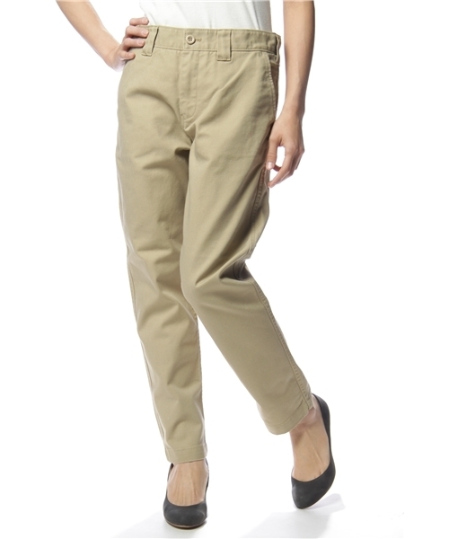◇Dickies◇ アメリカワークウェアパンツブランドの代表「Dickies」から、定番のストレートチノが入荷しました。女性でもトライしやすい柔らかな素材を使用しているので、フェミニンなカットソーやブラウスにもピッタリ。裾をロールアップさせて、フェミニンなパンプスやサンダルを合わせるのがオススメです。飽きのこない形なので永く活躍してくれること間違い無しのアイテムです。 品番:5546112100155 model:H159 B79 W59 H79 着用サイズ:X-SMALL
