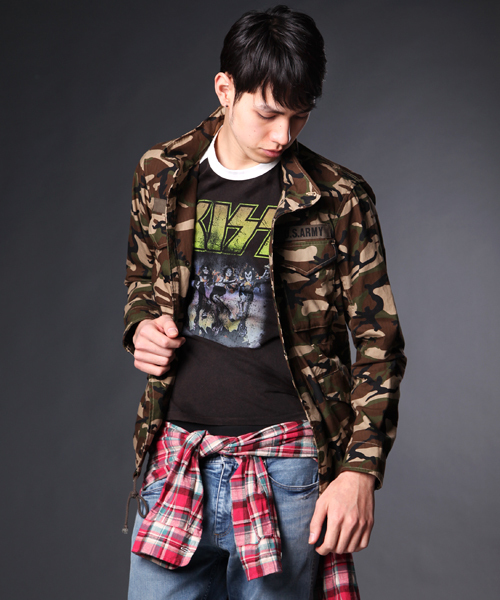 『Monkey Time』 2011 Spring/Summer " Mixture " ミリタリー、バイカーズ、テーラードを軸にエスニック、アメカジ、スケートをMIXしたスタイリングのコレクション。 リップストップのカモフラ柄で作成したM-65。胸のU.S.ARMYワッペンが今シーズンらしいアクセントです。中国製 ●モデルサイズ:model:H185 B90 W71 H91 着用サイズ:MEDIUM 店舗にてお問い合わせの際は、下記の品番をお申し付け下さい。 品名:MT RIP/CAMO M65 品番:1286-173-0061