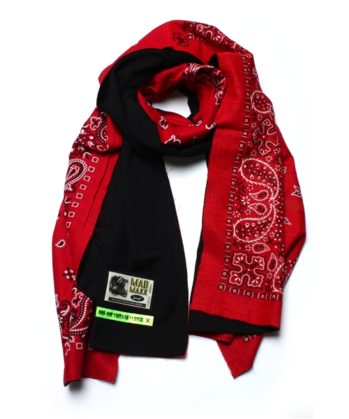 NEXUSVII®(ネクサスセブン)。デザイナー今野智弘氏により2001年、N.Yより逆輸入的にスタート。『Multiple Maniax & Technix』をコンセプトとし、黒を基調とするブランドカラーをベースとしながら、毎シーズンテーマを設定。服創りの中に徹底した生地製作や縫製面での新技術を付随させ落とし込まれたアイテムは国内外から注目を集める。また、同異業種を問わないコラボレーションにも定評がある。 今回入荷したアイテムは、ペイズリー柄のアートワークや独自のフレームパターンが古きよき時代のアメリカンカルチャーを象徴するヴィンテージのバンダナは絶滅危惧のMADE IND U.S.A.のみ使用。この貴重なバンダナ3枚分を継ぎ接ぎし裏地にカシミア混のレーヨン生地を張り合わせたオリジナルのストールは、いうまでもなくすべてが一点もののカスタムメイド。コレクター驚愕のヴィンテージバンダナを惜しげもなくリメイクしたクラフト感溢れる作品は、アメカジのアイコンにフォーカスする、いかにもNEXUSVII®らしいアプローチ。日本製。 品番:74365640097