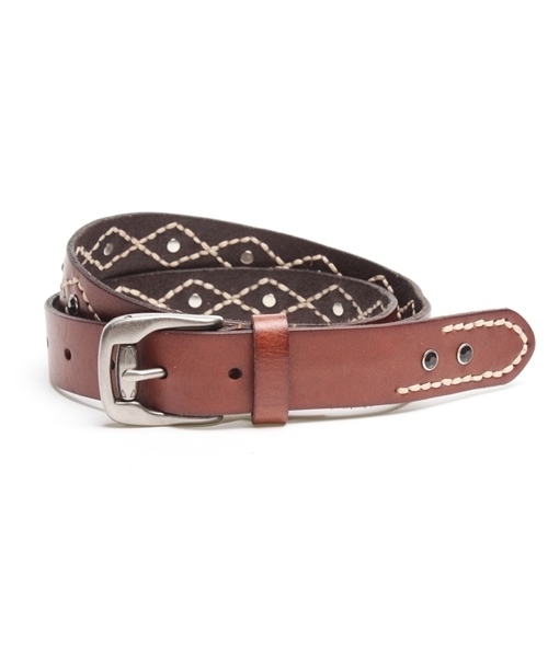 ◆BARK TANNAGE◆ 「BARK TANNAGE(バークタンネイジ)」はナノ・ユニバースオリジナルのレザーブランド。2001年に革小物からスタートし、無骨で無類なメンズウェアライン、バッグラインを続けて発表。その後、レディースのBAGライン、ウェアラインへと発展しました。 ダイアモンド柄のステッチとストーン使いがかわいいレザーベルト。ストーンがブラックなのでスタイリングに大人っぽさを残しつつさりげないポイントになってくれるのが魅力です。使いこんでいくにつれて自分だけの味わいのある質感に変化していくのも楽しみな一品。 品番:4101113400357