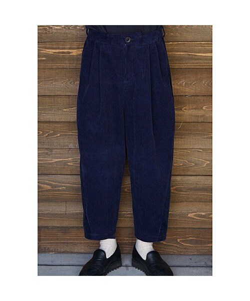同素材、同系色の2種類の畝の太さが違うコーデュロイを使用したSUPER WIDE PT。前からも後ろからも2種類の素材が見える様に切り替えを施す事で何ともかっこ良いPTの完成。 SET UPのJKあります。
