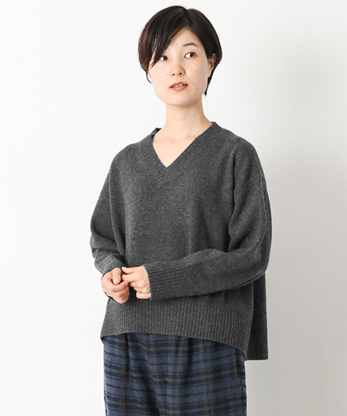 オーバーサイズが魅力のプルオーバーニット エクストラファインメリノウールとナイロンをブレンドすることで、やわらかで軽い着心地を演出するアイテム。デコルテラインがきれいに見えるVネックが美しく、女性らしさ溢れる1枚です。 COORDINATE 短めの着丈がハイウエストのパンツなどと相性がよく、トレンド感のある着こなしを演出します。シャツに重ねて裾を出した大人のコーディネートも素敵ですよ。 ※この商品は、ピリング(着用中の摩擦などにより毛羽が絡み合い出来る、繊維の表面の毛玉)ができやすい素材を使用している為予めご了承ください。