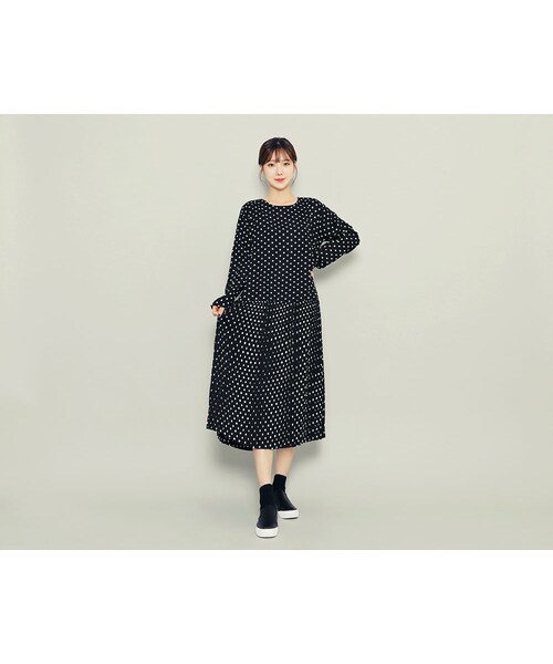 ドットパターン&プリーツディテールがすごく可愛い ルーズフィットのロング丈ワンピースです!