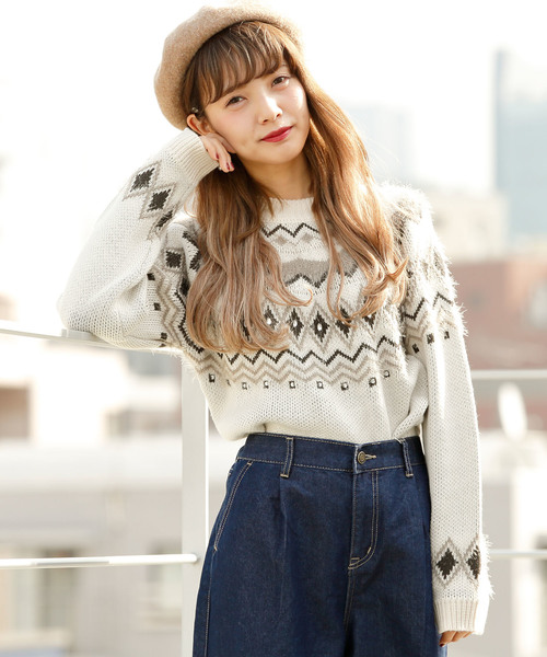 動く度に柔らかく揺れるフェザーやキラリと光るビジューをあしらいフェミニンにアップデートした求心柄プルオーバー。ベーシックなクルーネックは1枚ではもちろん、レイヤードスタイルにも◎。カラーで雰囲気が異なるのでお気に入りをチョイスしたい♪
