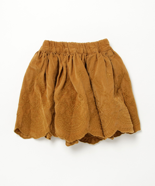 柔らかいシャツコール素材を使用しており、綺麗なフレアシルエットに仕上げました。裾のレース刺繍がとっても可愛い1着です♪