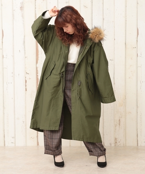 エコファーのフワフワなフードが顔周りを華やかに仕上げるモッズコート。裏にはキルティングのインナーが付いており取り外しての着用も可能。モッズコート+キルティング、モッズコートのみ。キルティングのみの3WAYで春先まで気温に合わせて自在に着こなしを変えられます。野暮ったくなりがちなシルエットもウエストのドローコードで絞れば締まった雰囲気にチェンジ。