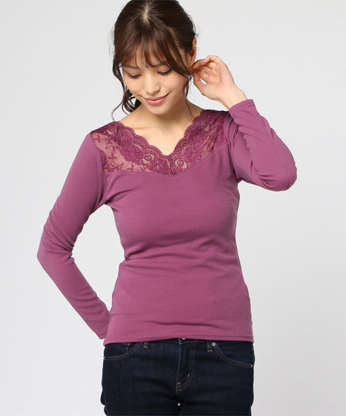 大好評のレーストップスが長袖で登場!前後Vカットのレースデザインで、衿を抜いた着こなしや後ろ開きのトップスとも好相性。カジュアルコーデもぐっと女っぽく仕上げてくれます。洗濯:手洗い可
