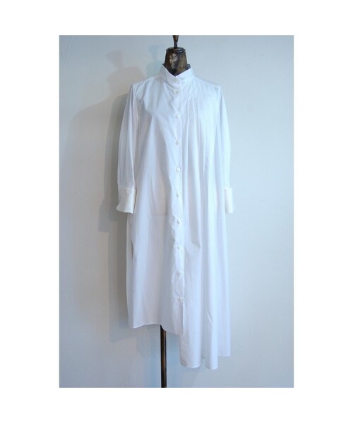 ブランド*Hippiness カラー*ホワイト モデル身長*156cm 映画「ティファニーで朝食を」のホーリーを イメージして作られたシャツシリーズ。 左右、アシンメトリーのデザインになっています。 袖はダブルカフス仕様。 襟はウイングカラーで、折り返すと サテン生地ななっています。
