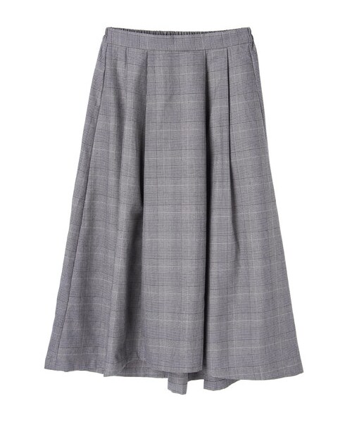 ボリューミーなフレアシルエットが、大人レディな着こなしを演出するイレギュラーヘムスカート。 グレンチェック×ミモレ丈で、エレガントな雰囲気に仕上げました。 シーズンムード漂う落ち着いたトーンのカラーは、コーディネートに程よい存在感を発揮してくれます。