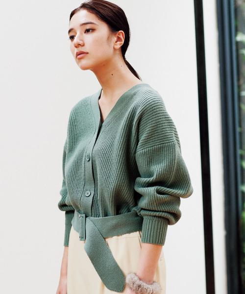 太めのベルトがポイントのカーディガンのご紹介。軽くてあたたかいウール素材はこれからの季節に最適です。表情たっぷりの畦編み&Vネックのバランスが今年らしいアクセントに♪また短めの着丈は、注目のハイウエストボトムとの相性も抜群です。羽織りとしての着用はもちろん、ボタンを閉めてプルオーバーとして着こなすのもおすすめ!~グリーンレーベル リラクシング各店へのセール品の在庫のお問い合わせに関して~ セール品の在庫の有無に関して店舗ではお答えできかねる場合がございます。 また、セール期間中の店舗でのセール品のお取り置きはお受けいたしておりません。予めご了承下さい。品名:CF カタアゼ BELT Vネック CD 品番:3628-105-0576
