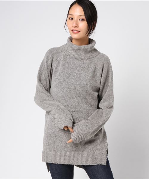 シアバターの保湿加工により、しっとりとしなやかな風合いが魅力のタートルネックデザインのニットチュニック。裾には両サイドにスリットが入っているので、トップスフロントインもアウトもこなれ感のある着こなしに◎ シンプルなワンカラーのルックスは合わせるスタイルを選ばず、カジュアルにもレディライクにも着回せる1枚です。