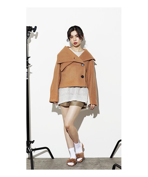 首元にボリューム感があり、小顔効果♪ 着丈も短めに作られているのでハイウエストボトムスとの相性もバッチリ。