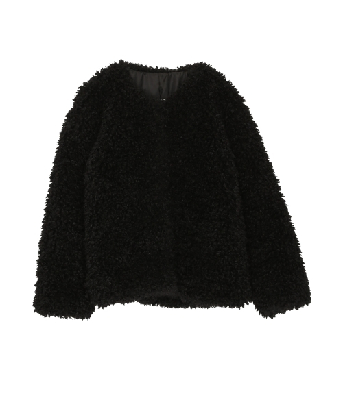 ノーカラーで女性らしい印象のプードルファー風のコートです。 見た目の可愛さだけでなく保温性が高いので 防寒着としても大活躍間違いなし!
