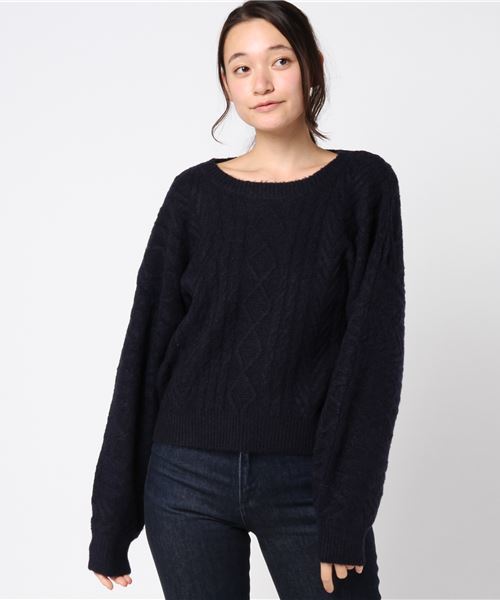 立体感のあるケーブル編みがモダンな表情をプラスするプルオーバー。ゆったりとしたドルマンスリーブが気になる肉感を拾わず、女の子らしい華奢見せ効果も叶えてくれます◎トップスにボリュームがある分、スキニーなどコンパクトなボトムを合わせてメリハリよく着こなすのがおすすめ。