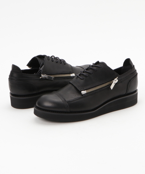 ファスナーがアクセントのストレートチップシューズ。ファスナーは飾りだけでなく、なんと取り外しが可能。スリッポンとしても使えるうれしい2WAY仕様です。ベーシックなデザインで、パンツとのマニッシュなコーディネートやドレスシーンの外しアイテムとしても使える着まわし力の高いアイテム。カジュアルなブラウン、どんなシーンにも馴染むブラックの2色展開です。