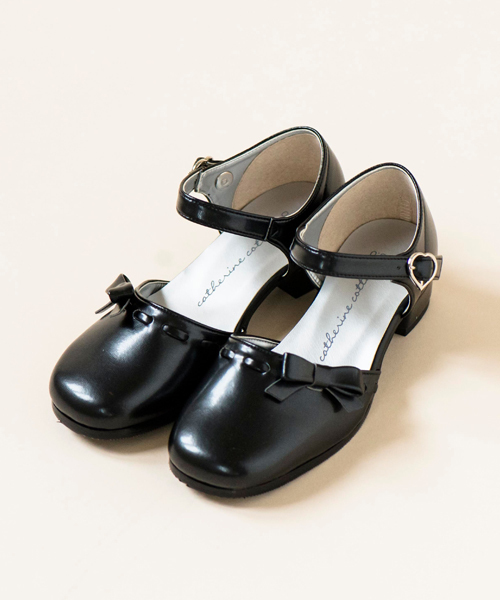 神戸の高級子供靴工房から届いた、フェミニンなフォーマルシューズ。 全体の姿が優雅できれいな日本製フォーマル子供靴です。 つま先は、足がかわいらしく小さく見えるスクエアタイプ。 つま先とかかとに芯が入っているので、使い続けても美しい形がキープされます。 ヒールは巻きヒールなので、後姿も美しく。中敷には程よいクッション入り。 さらにクッションの下の中底は、つま先の方が柔らかく、土踏まずが固くなっているため、足裏を曲げやすく、かかとをしっかりと支える歩きやすい構造になっています。 本底は柔らかくしなる素材。 バックルは可愛いハート型。もちろんストラップの長さ調整も可能です。 足に優しい履き心地と、いろんなお洋服に合わせやすいデザイン… キャサリンコテージの定番高級シューズです。 靴の底は、つま先部分はもちろん、滑り止めと強度の補強のためのゴムがついています。 ヒール部分は、16cm~19cmまでは滑り止めなし。20cm~24cmまでは、滑り止め付きです。 こんなシーンにどうぞ:ピアノやヴァイオリンの発表会・演奏会・コンクール、パーティーフォーマル、結婚式のおよばれ、オケージョン、リングガール・フラワーガールの衣装、七五三のドレスアップ、卒園式、入学式、卒業式、おでかけ ※商品の素材や色合いなど、生産時期によって差異が生じます。 ※外箱は、本体の潰れを防ぐために用意しているものであるため、 物流過程で、潰れが生じることがありますが、ご了承ください。 雑誌『ディズニープリンセス らぶ&きゅーと』『ディズニーといっしょブック』掲載