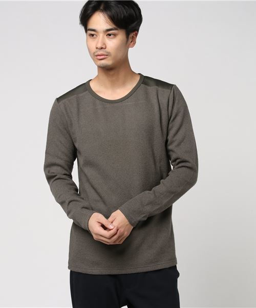 肌触りの良いパイル地を使用したプルオーバー。 ワンポイントとしてポリエステルの生地を切り返し、アウターを脱いだ際にも抜かりのない一着です。