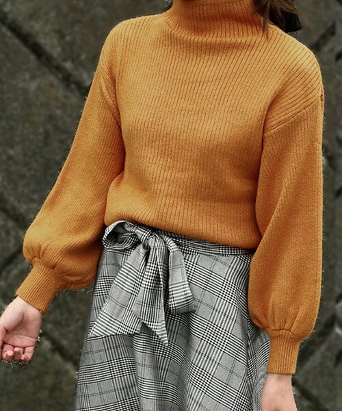 手触りの柔らかいニットで、よく伸縮するので着心地も良好。 上品なリブ幅で、カジュアルにもきれいめにもコーデ出来るお役立ちトップスです。 袖口はしっかり絞ってあるので、ボリュームのある袖が作れます。 【サイズ】 実寸サイズ 着丈 約50cm 首高 約6cm 身幅 約40cm 袖丈 約43cm ※平置きにて計測しております。