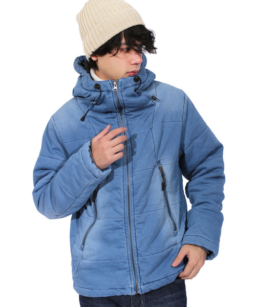 ■アメカジ系 ストリート系 におすすめの『 デニム 中綿 ジャケット フード付き ブルゾン 』ヘビロテ間違いなしの洗い加工を施した カット デニム生地 中綿ジャケット アウター 中綿ブルゾン が入荷しました。 ■カラー毎に異なる ウォッシュ加工 を施し ヴィンテージ 感を出したこだわりの逸品です。伸縮性のあるカットデニム素材とフロントの ジップ で首元まで閉められ、襟にボリュームのあるデザインなので 防寒性 抜群の仕上がり。■ネルシャツ パーカー と合わせて カジュアル スタイルの定番アイテムとして大活躍間違いなし。ボトムスは太目の カーゴパンツ から細め スキニーパンツ まで幅広くマッチします。カラバリも デニムと言えばの 定番人気 ブルー ワンウォッシュ ケミカル 全3色 をご用意いたしました。重さ 約1155g素材感 伸縮性…ややある 透け感…無い 生地の厚み…かなり厚い 着心地…普通 肌触り…普通