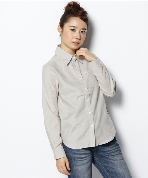 スタンダードな無地長袖シャツ。ホワイト、ライトグレー、ナチュラルの他に前面生地やポケットに切り替えを施した一風変わったデザインも!レディースシャツの中でも少し大きめに作っており寒い季節に中に着込む事ができるので、1年を通して重宝するアイテムです。 店舗にてお問い合わせの際は、下記の品番をお申し付け下さい。 型番:BL11AW-2122-017model:H166 B78 W62 H87 着用サイズ:FREE