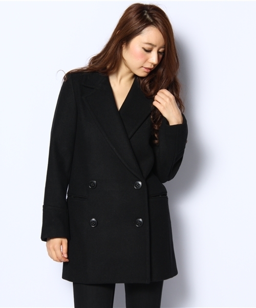 ウールメルトンコート☆メルトン素材で暖かく着ていただけるコートは、フロントをダブル仕立てにし、今年らしい一着に仕上がりました。タックパンツや細身パンツと合わせてマニッシュなスタイル、ワンピースやスカートにも合わせ易い着丈でフェミニンなスタイルにも◎なコーディネートの幅がグッと広がるオススメのアウターです♪シルエットのキレイさにもこだわったイチオシのアウターを色々なコーディネートでお楽しみ下さい。中国製:56251991449 model:H166 B78 W62 H87 着用サイズ:SMALL