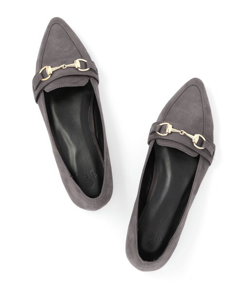 艶めくゴールドビットをONしたクラシカルなルックスが新鮮なスエードパンプス♪ ローファーデザインとポイントトゥでレディな印象に♂ フラットソールは疲れにくく、長く外を歩く時にお勧め◎ ★かかと部分に滑りにくい布を貼り、脱げにくくしています。 ★返りのある柔らかいソールを使用して、歩行に合わせてフィットします。 ★特殊なゴム底に溝を入れることで滑りにくいです。 ★中敷き全体に弾力性の高いクッションを使用し、疲れにくく歩きやすいです。