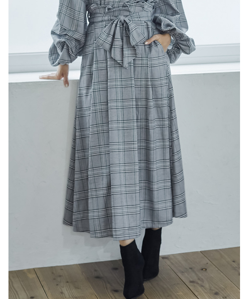 いつもより少しだけフェミニンに。リボンがポイントのロングスカートトレンドパターンで仕上げたロングフレアスカート【デザイン】ウエストで結ぶ大きなリボンがフェミニンなアクセントに。長めの丈でシックな印象もあり、大人の着こなしにマッチするトレンドアイテムです。【コーディネート】同柄のトップスとセットアップとしてご着用いただけます。スカートのみで着まわす際は、タートルネックのリブニットをあわせるのが今年らしくて、おすすめです。ルーズニットやスキッパーシャツとも好相性。【素材・着用感】程よくハリのある生地に、裏地も付いており秋冬の着用にぴったり。ウエストリボンは取り外しできるので、コーディネートに合わせて着こなしを楽しんでいただけます。■モデル着用写真は撮影環境により、多少実際のカラーと異なる場合がございます。お気に入りショップにご登録いただきますと、ショップニュースを、いち早くお届け致します。
