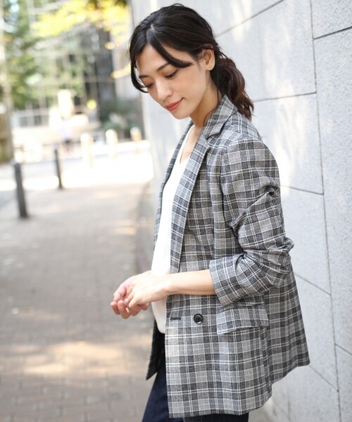 ダブル仕立てが今シーズンらしい雰囲気で存在感を放ちます。程よい厚みと起毛感のあるギャバジンストレッチチェックが豊かな表情です。少し大きめのサイジングが薄手のニットトップスとも相性◎ダブル釦なので前をあけた時のボリュームも綺麗です。さらりと羽織るだけでトラッドな印象をを醸し出します。