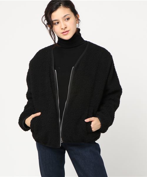 2大アウターをこれひとつで楽しめるリバーシブルブルゾン! 今シーズン人気急上昇のボアブルゾン、光沢のあるミリタリー風なブルゾンと、どちらも着回しやすくトレンドも兼ね備えた実力派です。 首元はカラーレスのVネックタイプ。 パーカーなどフード付きのアイテムをインに着ても首元がすっきりします。 [クリーニング] ドライクリーニング可(F)