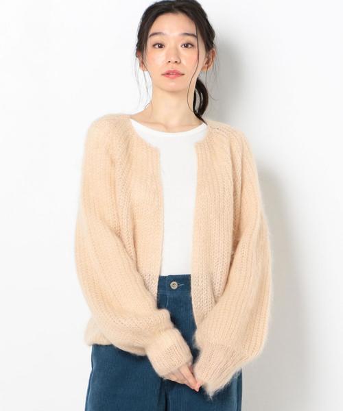 ふわっとしたモヘヤ混のニットカーディガンほどよい透け感とやわらかいカラーがフェミニンな印象ロゴTeeなどカジュアルなアイテムとコーデイネイトしても◎※着用、お取り扱いの際は商品についておりますアテンションタグ、洗濯ネームを必ずご確認ください。店舗へお問い合わせの際は、全国のAnother Edition 各店舗まで下記の品名/品番をお申し付け下さい。品名:AEFC MHR C/N CGN 品番:5615-199-0992