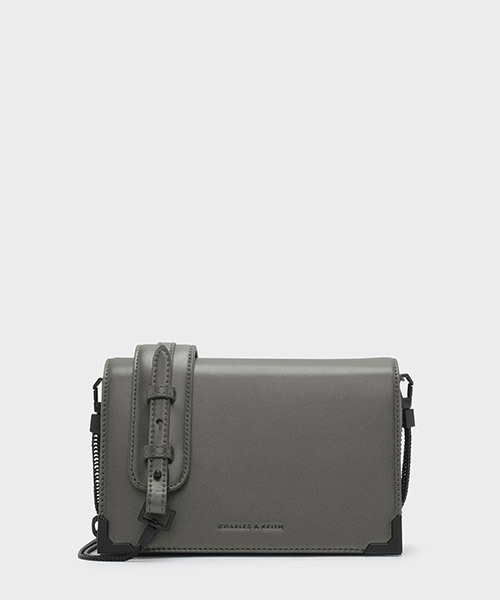 ウォレット機能を持たせたユニークで機能的なデザインが魅力のバッグ。かちっとしたスクエアフォルムや縁にあしらったメタルチップでメリハリあるデザインに仕立てました。中は3つの収納スペースに区切り、真ん中にはカードポケットやマチ付き収納、ファスナー付きのコインスペースまで完備した使い勝手の良さが特徴。高級感あるレザー調の素材がデイリースタイルからオケージョンシーンまで対応できるきちんと感を持たせた風合いもポイントです。チェーンが切り替えになったストラップでアクセサリー感覚で纏える女性らしい一品。表面感を持たせたモードなブラックと控えめに艶めくライトグレーの2色展開。※取り外し可能アジャスター付ストラップ、内ポケット(カードポケット×6、ファスナー付コインスペース×1、お札スペース×4)