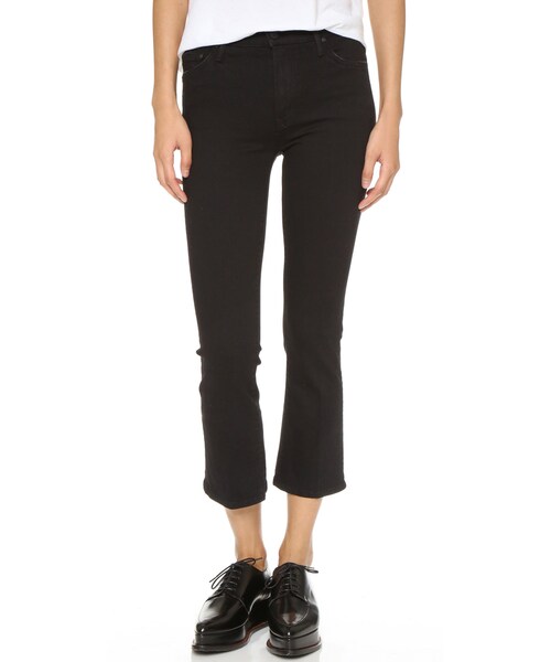 5-pocket MOTHER jeans in a cropped, straight-leg profile. Worn edges. Button closure and zip fly. Fabric: Lightweight stretch denim. 92.5% cotton/5% polyester/2.5% elastane. Wash cold. Made in the USA. Imported fabric. Measurements Rise: 9.5in / 24cm Inseam: 25.25in / 64cm Leg opening: 14.25in / 36cm Measurements from size 27 Style # MOTHR20415