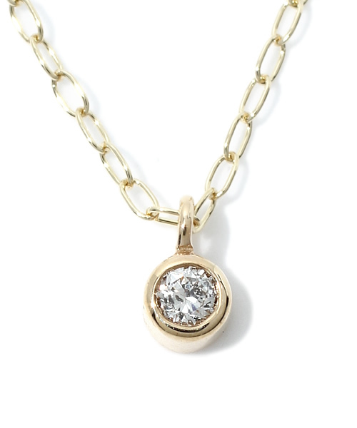 0.03ctの一粒ダイヤモンドが胸元で繊細な煌めきを放つネックレスです。 素肌に優しく馴染むK10 special goldを使用。上品なストーンの存在感はそのままに、丸型枠で女性らしい印象に仕上げました。ベーシックで飽きのこないネックレスは、ひとつ持っていると重宝するアイテムです。 ご自分用にはもちろん、ギフトとしてもお勧めのジュエリーです。 ※K10 special goldについて:この地金は金以外の含有率を調整する事によりK18のもつ深みのある金色に近づけて開発された、より高級感のあるK10です。本来ならばK18に比べてK10は金の割合が少ないため金そのものの色が薄く白っぽくなってしまうのが通常ですが、幾多の試作の後にこの色に辿り着きました。 ※こちらの商品は天然ダイヤモンドを使用しております。汗や雨などの水分に非常に弱く、摩擦や強い衝撃により天然石が欠けることがございますので、ご使用の際は充分にご注意ください。ご使用後はクロス等で優しく汚れを取り、直射日光のあたらない場所に保管してください。 ※こちらの商品には箱・袋が付属されておりません。あらかじめご了承ください。 店舗へお問い合わせの際は下記品番をお伝えください。 品番:73-22-0053-058