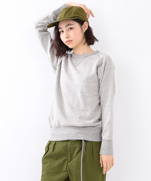 しっかりとした質感のコットン裏毛素材を使用。ウォッシュを施し風合い良く仕上げました。脇に縫い目のない丸胴編み機でつくられた粗挽きの杢裏毛を使用した, フリーダムスリーブのクルネーックスウェット。シンプルだからこそ、素材にこだわり抜かれたひと品です。 柔らかなな印象の杢調のスウェットは柄ものとの相性も抜群!人気の小花柄のショートパンツやスカートで、キュートに着こなしたいアイテムです。足元はモカシンや重めのブーツでバランスよく。デイリーカジュアルコーデにピッタリのひと品です。