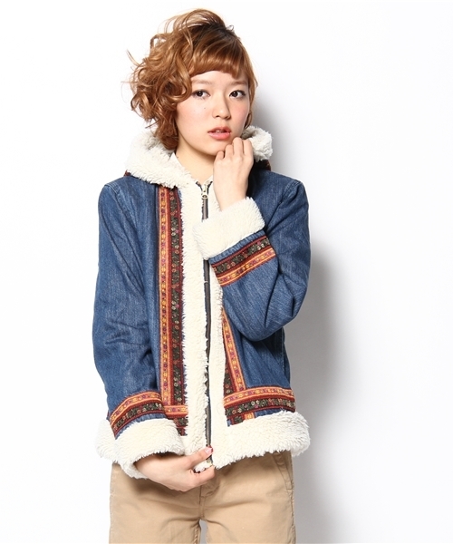 もこもこボアがたまらない!キュートなチロリアンボアブルゾンです。袖口や裾だけでなく裏側にもボアが施されたかわいくもあたたかな仕上がり。 表地はコットンなのでウールの大きめストールを肩からさっと羽織るのも◎。チェックスカートでかわいく、ウールジョッパーズでクールに決めるのもオススメです。 原産国:中国 モデル着用サイズ:ONE SIZE model:H168 B80 W60 H86 店舗へお問い合わせの際は下記品番をお伝えください。 品番:13-18-0776-202