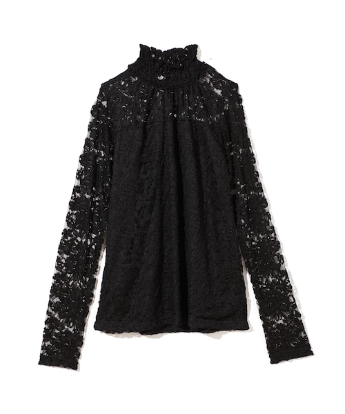 繊細なレースがクラス感を漂わせるトップス♪ トレンドのハイネックでスタイリッシュな印象をプラス♂ ボトムにINでもOUTでもスタイリングOKな1枚◎ ★伸縮性があります。 ★身頃裏地付きです。 ★裁断の関係で、柄の出方が写真と多少異なる場合があります。