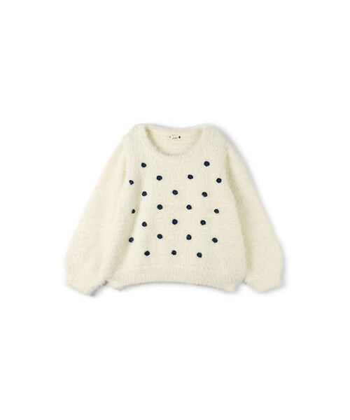 編み目がプクっとしたポップコーンみたいな形(ポップコーン編み)が可愛いニットです。ニットとは異なる配色にすることでアクセントポイントにしています。