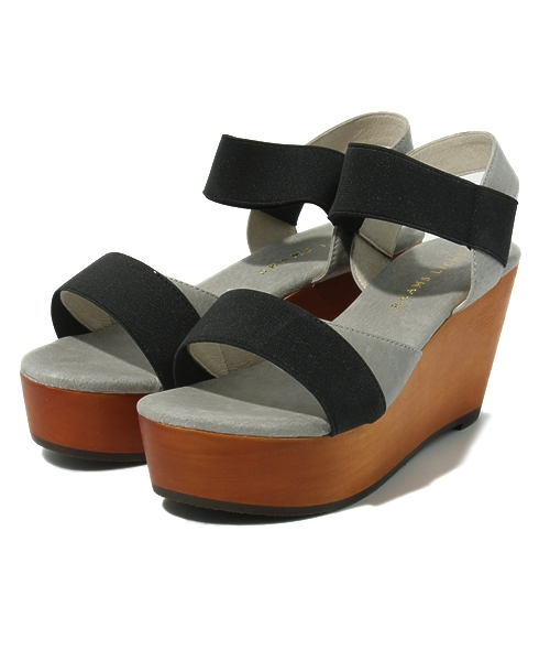 レザーとゴムストラップがコンビになったウェッジソールサンダルです。ナチュラルなイメージのウッドにモダンテイストをミックスさせ、都会的な印象に仕上げた一足です。ワンピースやチュニックに合わせて、サンダルを主役にしたスタイリングはいかがでしょうか。 原産国:中国 店舗へお問い合わせの際は下記品番をお伝えください。 品番:52-33-0005-403
