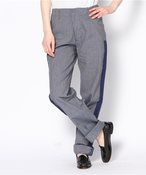 しっかりとしつつも爽やかな印象を与えるインディゴストライプ生地を使用。後ろの尾錠や側章などBEAMS BOYらしいこだわりが感じられるひと品です。 シャツとジャケットでクールに着こなしたいアイテム!ボウタイやスカーフで表情豊かに仕上げて♪裾を折り返してダブルにすれるのも◎。短めチュニックともバランスよく着用いただける、おすすめのパンツです。 原産国:日本 モデル着用サイズ:0 model:H163 B80 W58 H84 店舗へお問い合わせの際は下記品番をお伝えください。 品番:13-24-0572-202