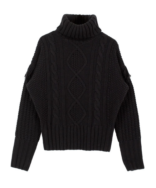 立体的なフロントの編地と袖部分のフリンジが目を惹くケーブルニットプルオーバー。トレンドのフリンジデザインで、合せるだけでこなれ感のある着こなしに。タートルネックで首周りも暖かく、小顔効果も期待できるおすすめアイテムです。