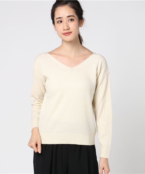 羊毛やカシミヤを使用した高級感ある装いのニット。 Vネックとボートネック、どちらをフロントにしても着用できる2WAY仕様です。 リブ素材でスッキリとした上半身のラインに仕上がるのでボトムスを選びません。 その日の気分やスタイリングによってネックラインを変えることが出来る便利なアイテムです。