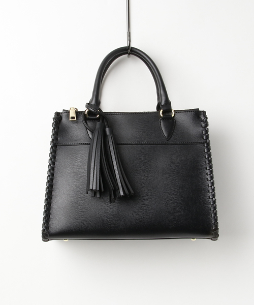 ファスナ-ポケットが前後について、使い勝手抜群のスクエアミニトートにトレンドのかがりステッチを施しました。 とても上質な雰囲気のフェイクレザ-素材を使用し、エレガンスなコーデにもカジュアルファッションにもさりげなくマッチしてくれます。 小さめのサイズながら、マチが広めにとってあるのでしっかりとした収納力が自慢です。 取り外し可能なショルダーが付属しますので、ななめがけでもご利用いただけます。