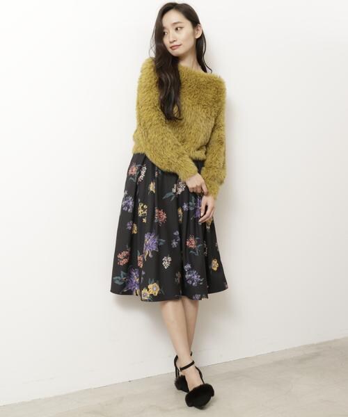 大柄のフラワーモチーフとふんわりと揺れるフレアシルエットがエレガントにマッチしたスカート。膝をすっぽりと覆うミディ丈で品良くきちんと感のある装いに。同一シリーズのトップスと合わせればセットアップスタイルも楽しめます。