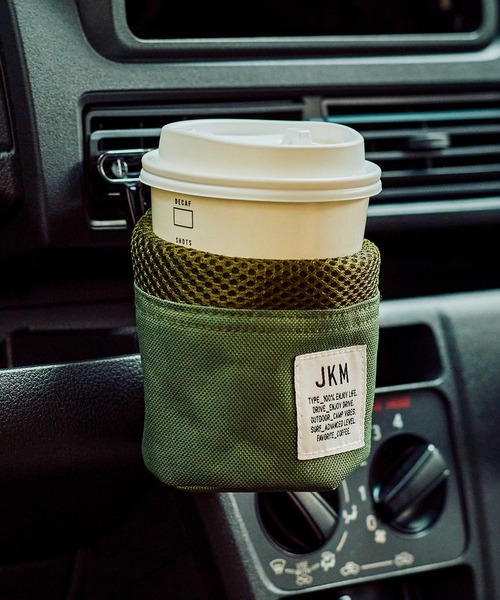 今までありそうでなかった、ユニセックスで無骨なカラーリングが車内をオシャレに演出してくれくれる、エアコン取付タイプのドリンクホルダー 存在感のあるロゴが、目に飛び込んできます。コンビニコーヒーから500mlペットボトル、太缶などを収納でき、エアコン送風によるドリンク類の保冷・保温ができます。ポケットの角度調節ができるので、安定して飲み物を置くことができます。両側の布生地でドリンクをしっかりホールドし、出し入れが簡単にできます。 ■サイズ: 11×9.5×11.5cm ■カラー: ロゴ ・カーキ: JKM ・ネイビー: JKM ■注意事項: 収納物の総重量は220gまで対応可能 ※2022年9月1日より、価格改定させていただきます。商品タグに記載している価格が旧価格のものが混在しております。ご了承頂きますよう、よろしくお願い申し上げます。