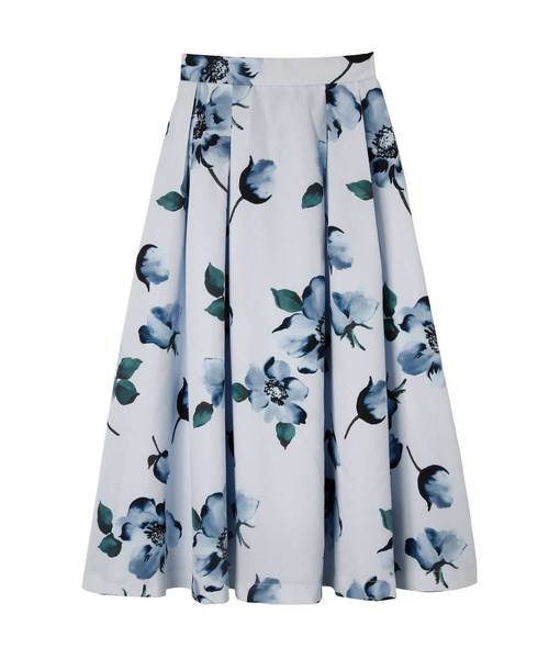 秋冬のスタイリングに映える大きな花とカラーリングが目を惹くフレアスカート。落ち着いた配色になりがちな秋冬のコーディネートを、華やかに彩ります。ボリュームをたっぷり取り、少しハリのある素材感で広がりが綺麗に出るようにデザイン。ウエストのバック部分にのみゴムが入っているので締め付けなく着用できます。スカートにボリュームがある分、トップスはタイトにインスタイルでの着用がオススメです。