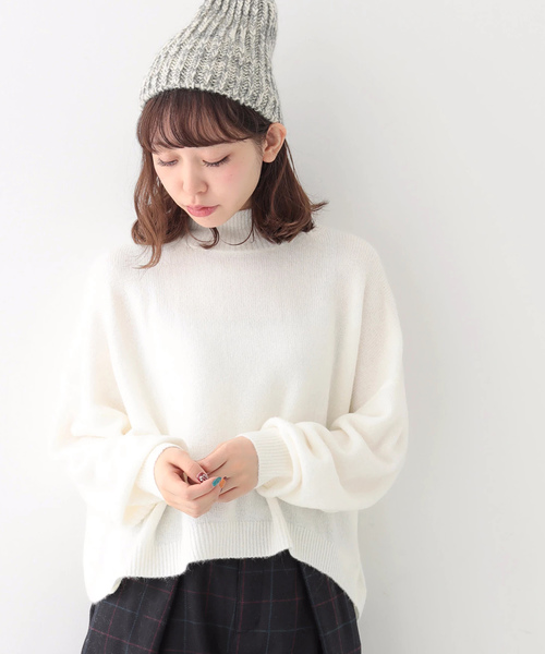 高さをもたせたハイネックデザインで上品な印象に仕上たニットプルオーバー。 ラインを拾わないゆったりめシルエットで、気負いなくスタイリングできるのもうれしいポイント◎ ふっくらとしたあたたかな風合いが心地よく、デイリーに幅広く活躍してくれるアイテムです。