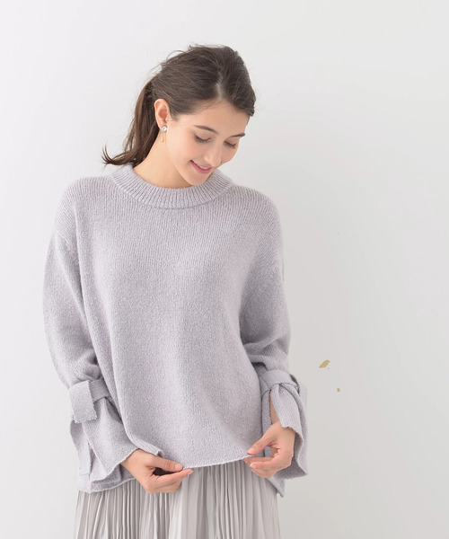 洗練モダンなシンプルニットを、袖口にリボンを結んでレディにアップデート。 ハイネックがスタイリングを品よくまとめるポイント。 ミニマルなルックスが大人顔の1枚は、旬のボリュームボトムと合わせた、エフォートレスなコーディネートもおすすめです。