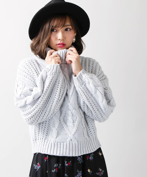 ハイネックデザインで仕上げたニット。単色仕様ながらも、ロービングケーブル編みの柄目がアクセントになるひと品。 肩の落ちたドロップショルダーデザインが、コーディネートにリラックスした雰囲気をプラスします。シンプルなデザインとカラーなので、デニムやワイドパンツを合わせてカジュアルに、またスカンツなどと合わせてフェミニンにと幅広いコーディネートを楽しめるひと品。 今季はベレー帽やチョーカーなど、小物で遊びを効かせたコーディネートもオススメです。